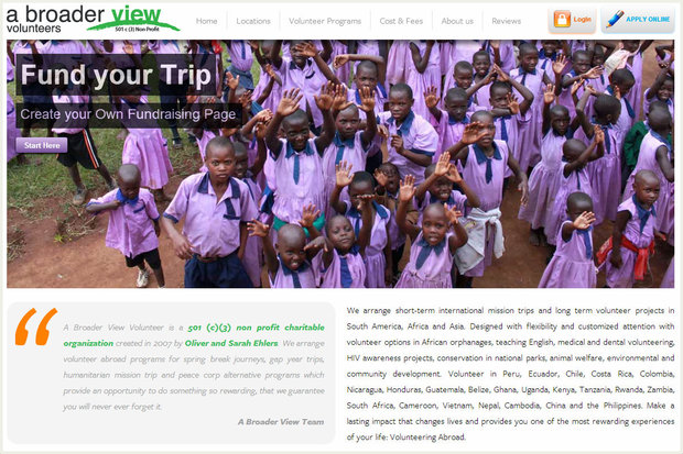 WHAT: A charitable organization based in the USA that arranges short-term international mission trips as well as long term volunteer projects. A Broader View specializes in offering travelers the opportunity to explore a new country while taking part in meaningful, rewarding service work.