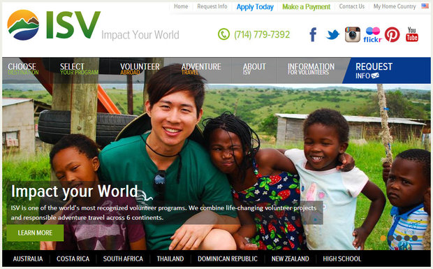 10. ISVWHAT: ISV offers life-changing volunteer and responsible adventure travel programs designed to educate, inspire and result in more active global citizens.JUST CAUSE: Various.WHERE: Australia, Costa Rica, South Africa, Thailand, Dominican Republic, New Zealand, Vietnam.WEBSITE: http://www.isvolunteers.org/