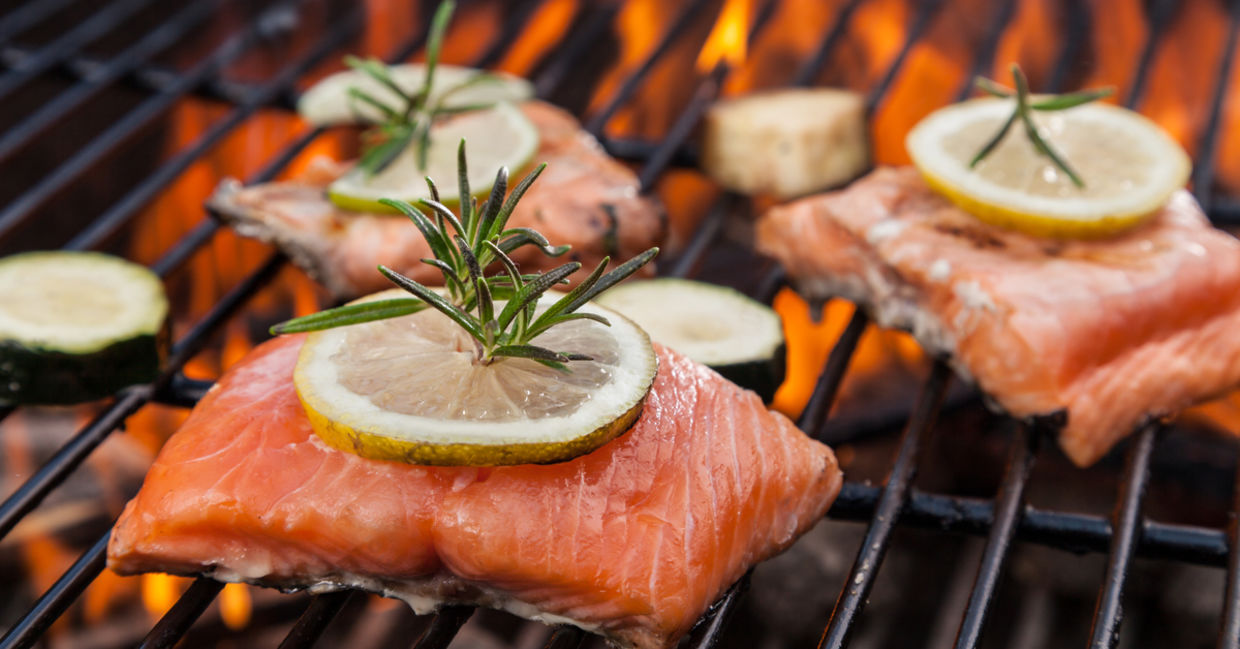 Salmon is rich in Omega3, and this superfood is part of the Mediterranean diet. Salmon is very healthy heart food and a great source of protein. So, skip the burgers and hotdogs and grill some wild salmon or other fatty fish instead.