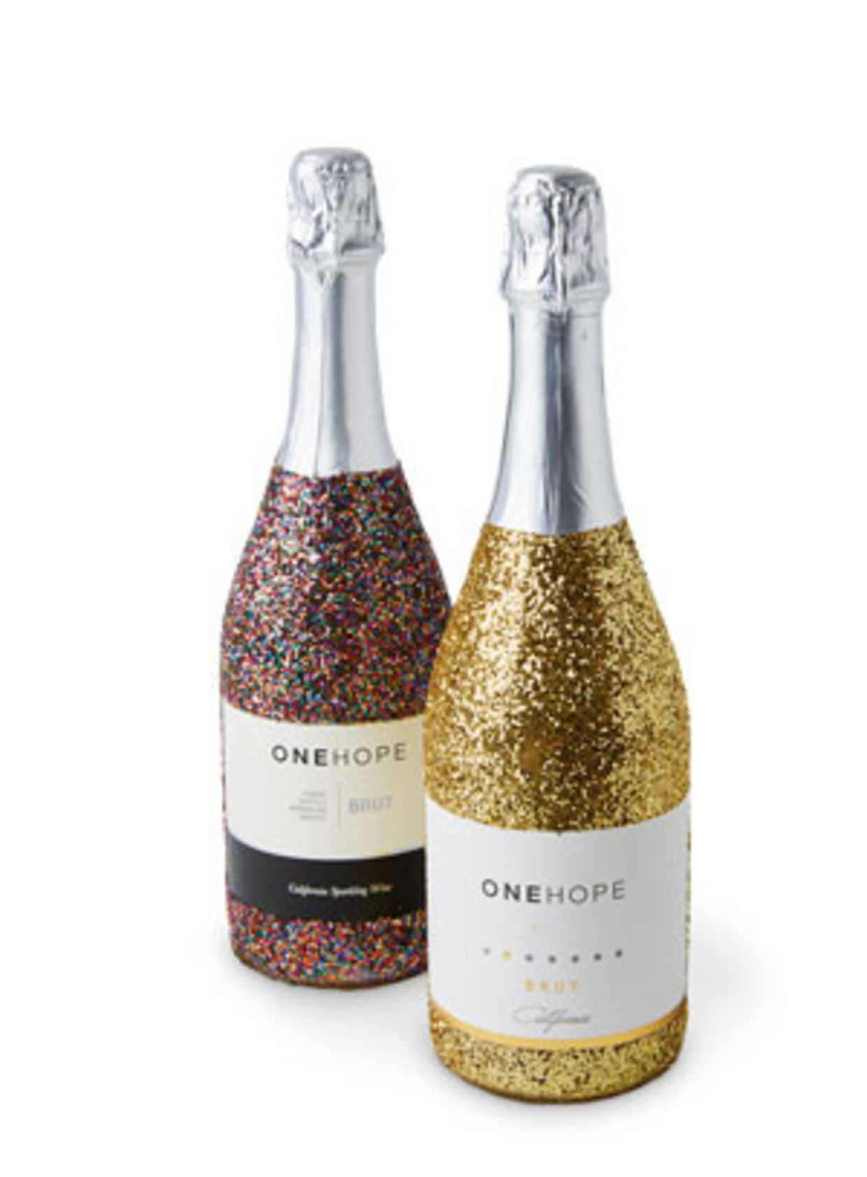 Each bottle of bubbly California Brut Sparkling Wine Rainbow Glitter Editionsupports The Trevor Project’s suicide prevention helpline, while each purchase of the California Brut Sparkling Wine Gold Glitter Edition provides 15 meals to a child in need ($59, onehopewine.com).