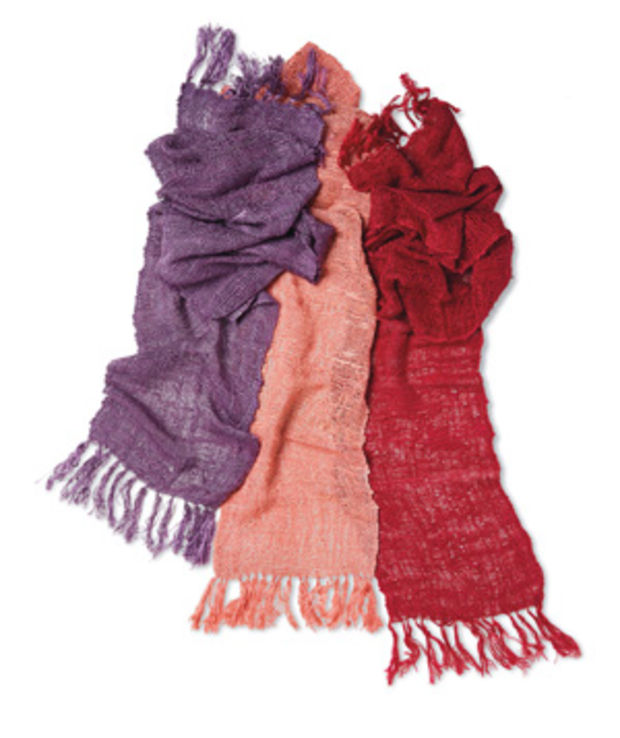 Wrap up in style with these colorful Handcrafted Raw Silk Scarves. The women who make them are from the Community Trade Link in Kathmandu, Nepal. Through fair trade, they support themselves and their families and ultimately improve their lives ($50 each, sushannatural.com).