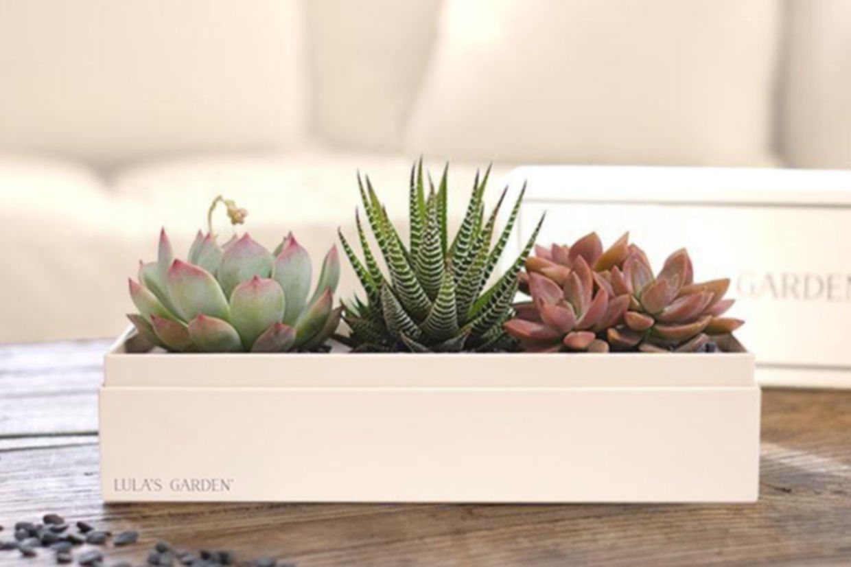 A succulent plant garden from Lula's Garden is a great gift for a family member, friend, or coworker. Each garden is hand-planted in Los Angeles using locally grown succulents. Every purchase from Lula's Garden supports Water.org and other groups that provide access to clean water.