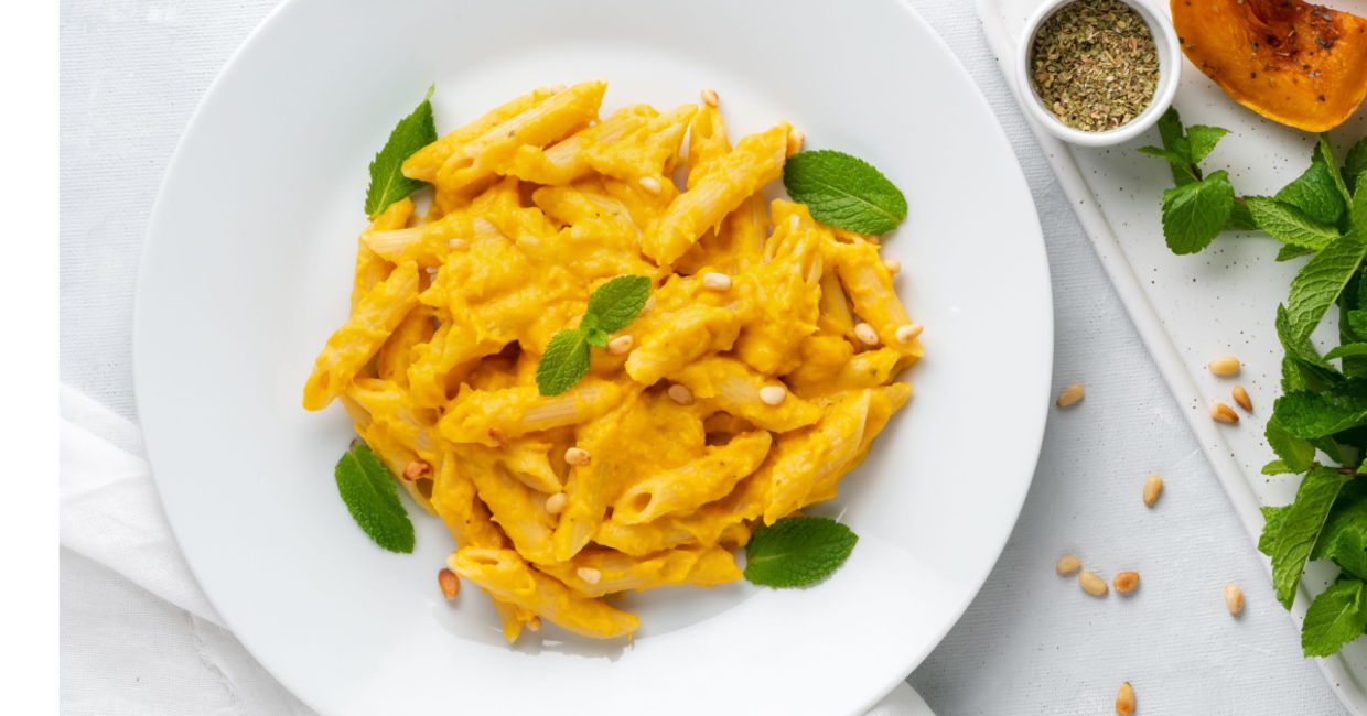 Nothing says fall more than pumpkins. That’s why this super simple creamy pumpkin pasta recipe from the blog Strength & Sunshine is spot-on for your Thanksgiving table. This one-pot dish calls for one box of vegan gluten-free pasta, one can of pumpkin puree (not pumpkin pie mix), sliced black olives, chives, and parsley. If you are ambitious you can cook a fresh pumpkin instead of using canned.