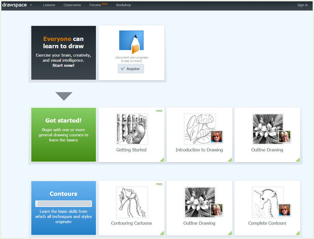 LOOK OUT FOR: Drawspace also offers Classrooms, courses that specialize in teaching a specific technique in which students can earn credits. Some classrooms are free while others have a fee that includes interaction with other classmates and teacher feedback.