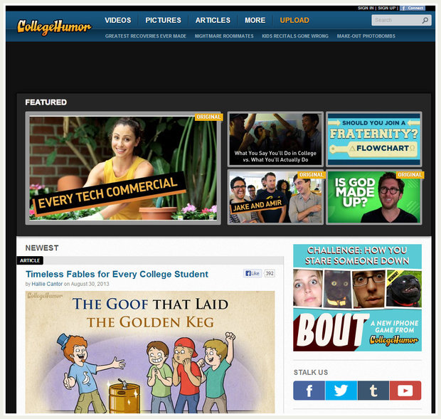 While the humor on this site was originally aimed at college students procrastinating online to get out of studying for exams, there really is something here for everyone. Whether it's thought-provoking pranks - like this one – or animals dunking hoops, these guys will bring out the early 20s chuckle in you.