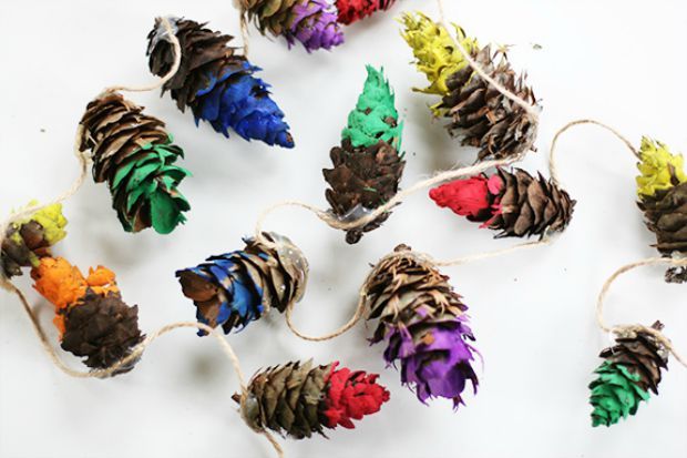HOW IT’S DONE: Dip the tips of each pinecone in a different color paint. Glue the pinecones to a string of yarn about 2-3 inches apart. Hang up your garland wherever you’d like for an earthy decorative touch.