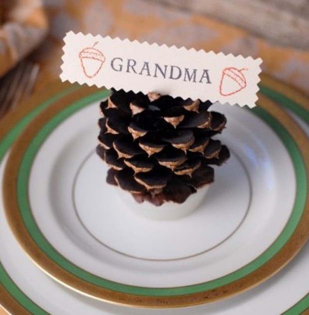 Create a rustic feel at your dinner table, and make sure every guest feels welcome and knows where to sit with these adorable pinecone place card holders.