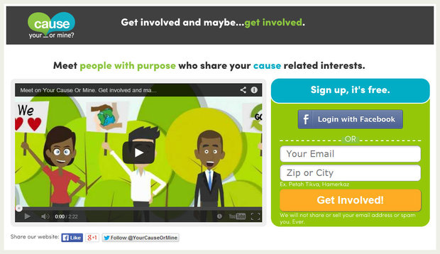 WHAT: The free website is a meeting spot for people with cause-related interests to connect, volunteer and perhaps fall in love. Instead of the typical first date routine of drinks at a local bar, YourCauseOrMine highlights local volunteer events - which serve as a great alternative way to meet someone special for the first time.