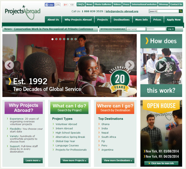 WHAT: Projects Abroad matches volunteers with a tremendous range of projects worldwide. They cater to all different folks aged 16 to 75, and offer variuos fields of volunteering - from performing arts and archeology to teaching and building.