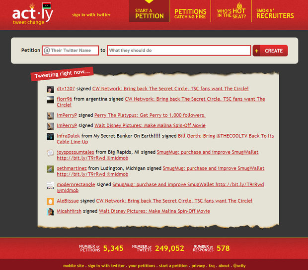 IN DETAIL Act.ly enables the Twitterati to create petitions literally at the click of a button. Fill in the target’s Twitter handle, type in the petition - and, presto, a petition is created. Start spreading it and hope for the retweets to follow.