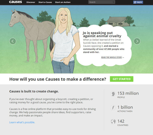 IN DETAIL Definitely among the strongest and most popular websites in the field, Causes allows users to create communities that take action or support specific nonprofits - by signing petitions, pledging to take actions and facilitating donations.