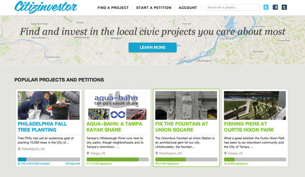 IN DETAIL Citizinvestor allows city dwellers a chance to shape their town’s reality. The crowdfunding platform strives to breathe a new life into dust-collecting municipal plans with the help of citizens, who can now fund the projects they care about. The website also gives voice to individuals who care, allowing users to start petitions - calling for municipalities to attend to various matters.