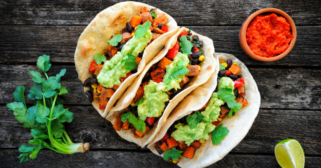 Love tacos? Try these vegan black bean tacos from The Simple Veganista. Packed with plant-based protein, fresh veggies, and the wholesome goodness of avocado, this ten-minute recipe is easy to make and fun to eat. All you need are black beans (canned), an onion, spices from your pantry, fresh leafy greens, salsa of any kind, lime, either corn or flour tortillas and garnish with fresh avocado slices.
