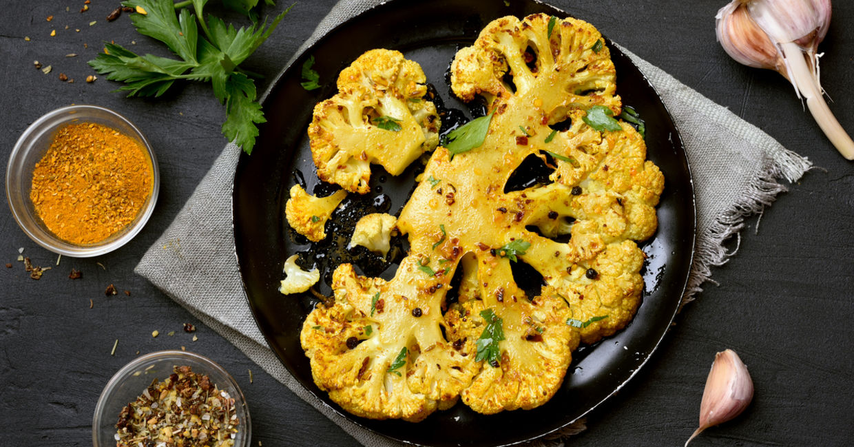 This delicious recipe from BBC Food makes a light summer meal. Combine grilled cauliflower with red pepper, olive oil, capers, olives, red wine vinegar, spices, and topped with natural almonds to make a chock-full of nutrients and plant-based protein meal that even a dedicated meat-eater will enjoy.