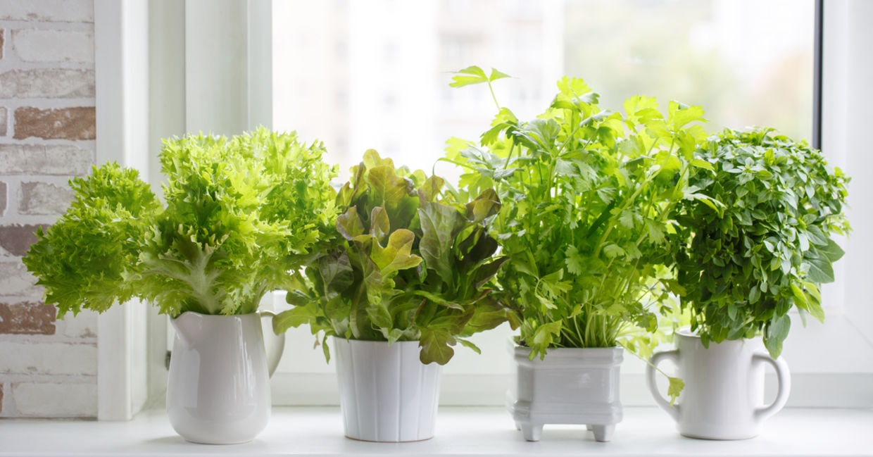 If your kitchen doesn’t have an area for direct sunlight, make sure to move the plant in an area that has a light source for enough hours in the day. Keep in mind that some plants have different sunlight preferences. Most need daytime temperatures of 68 to 70 degrees F with 30 to 50 percent humidity.