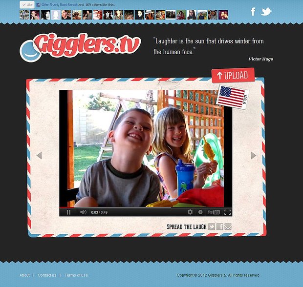The videos are curated by Gigglers.tv's team, who edit the originals into brief, 10-second clips. Users are welcome to upload their own videos and join the funniest party on the web.