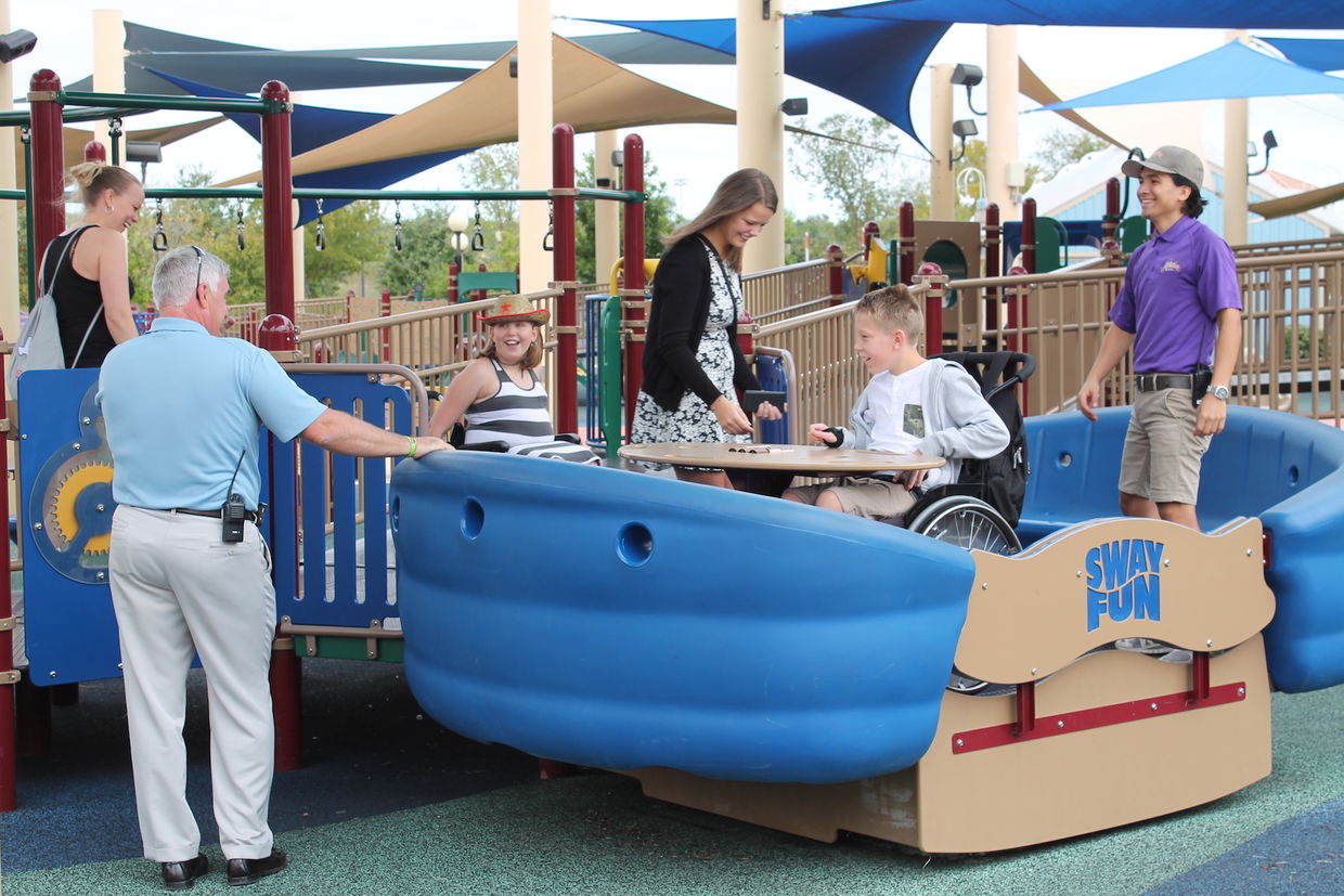 The park even provides high-tech waterproof wristbands for wandering children to wear so they can have some independence, but still be easily located with the help of the expert staff. Waterproof wheelchairs called PnewChairs were specially developed for Morgan's Inspiration Island.