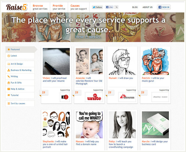 IN DETAIL Raise5 allows users to sell services (from proofreading resumes to branding your business), and the proceeds go to a cause of the user’s choice (Raise5's commission deducted).
