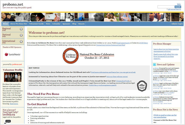 IN DETAIL Pro Bono Net’s octopal reach results in close collaboration with a slew of other legal nonprofits and several websites. The go-to website is for lawyers interested in providing pro-bono services in the States and internationally.