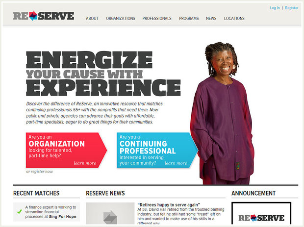 WHAT Matching between nonprofits and seasoned professionals aged 55+.
