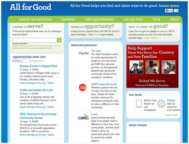 IN DETAIL Free access to a volunteer search engine that crawls through some of the largest powerhouses of volunteer listings. The search - which may be filtered according to location and category - yields a slew of opportunities, many of which are for professionals wishing to contribute their talents for a good cause.