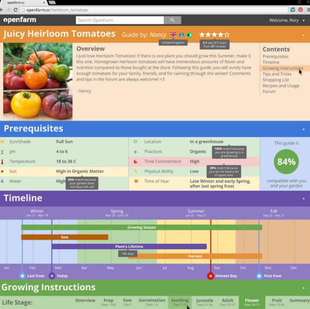 Urban gardening’s popularity is on the rise as folks are more concerned with where their food is coming from and there is a spike in new technologies that are making growing accessible and doable. OpenFarm is a welcome addition to the growing lexicon of farming and gardening resources with an easy-to-navigate format that will encourage even more folks to roll up their sleeves and start planting.