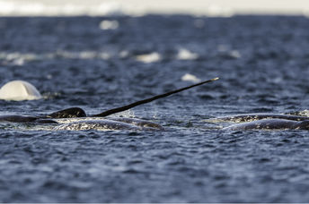This Narwhal Who Lost Its Way Is Taken in by a Pod of Belugas